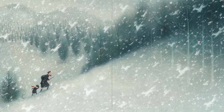 As I developed the narrative a number of other themes started to become important to me, such as animal rights and the loss of a parent. The silent picture-book format also encourages a more personal interpretation of its story, perhaps determined by discussions between parent and child. It is my hope that children will enjoy the story as a magical winter adventure, a tale of friendship and discovery.