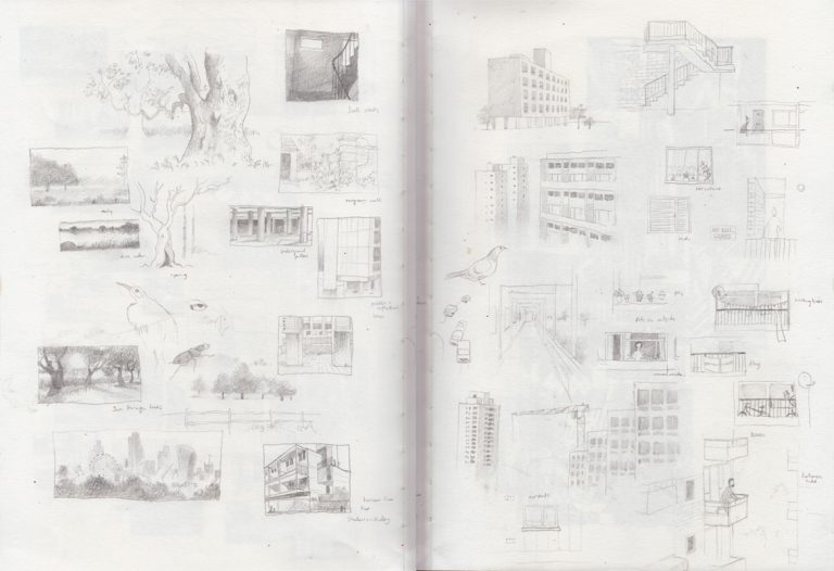 After speaking with Joseph about the adventures he had growing up in Roehampton, near Richmond Park, I did some visual research into the area, helped by Joseph sending me some photographs. I really wanted to try and create a visual adventure that would complement Joseph’s poem, blending the mundane, the dark and dangerous with the fantastic and celebratory. Visual research is really important to undertake in any project, especially for ‘Our Tower’, and my methods change from project to project. I think a lot of Joseph’s work is autobiographical, so it was important to me that I captured a sense of Joseph’s personal story in the imagery. Whilst some of the details were lost in the finished artwork—for commercial purposes—I hope the essence of some of that initial research influenced the entire project.